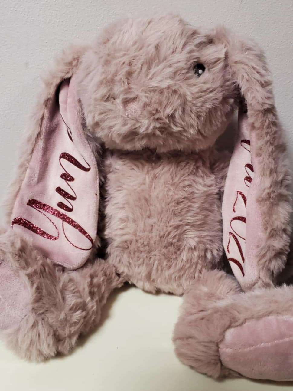 Une peluche lapin toute douce rien que pour votre enfant personnalisée avec son prénom , date de naissance, poids, taille… c’est à vous de choisir !